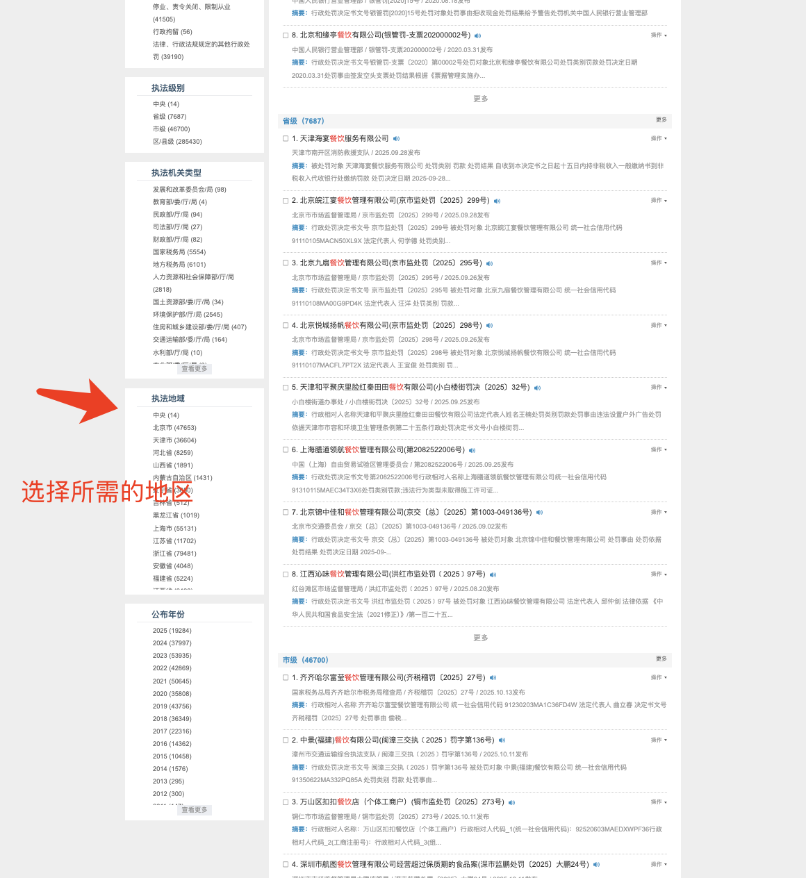 - 若标题未指定“地区”,系统会尽力从处罚机关中识别(准确度会受文本完整程度影响)。