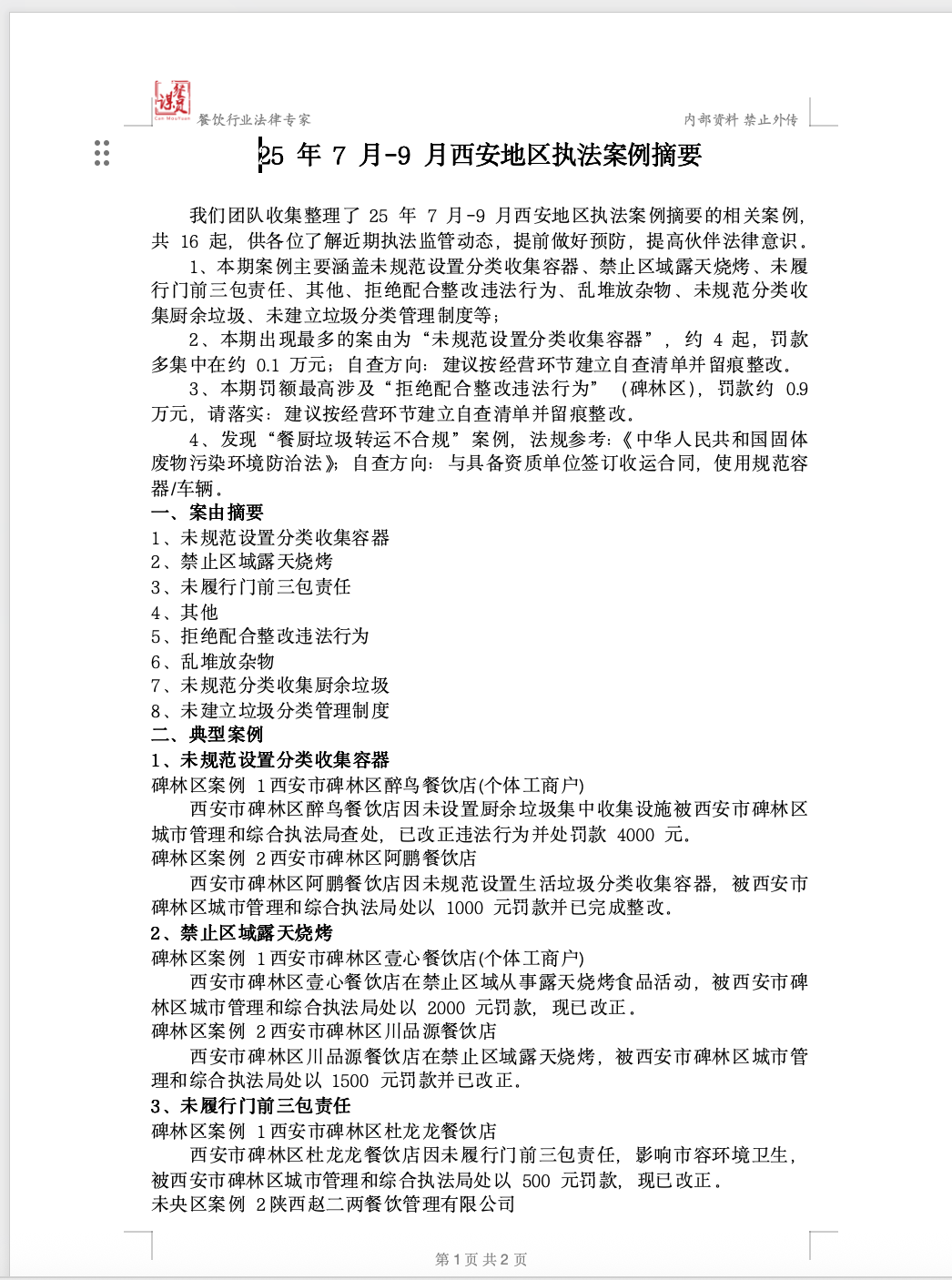 - 系统会把“意思相近”的案由合并到更通用、好理解的名称下,例如“油烟排放/净化不合规”“广告宣传违法”等,便于数据汇总。