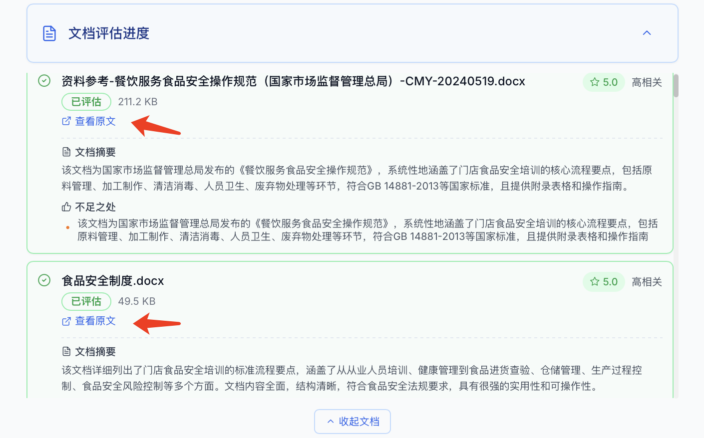 相关性评估:每份文档包含“评分(1-5)+ 摘要 + 要点 + 评估理由”,并标注是否推荐,可点击查看原文进入知识库查看原文件内容。