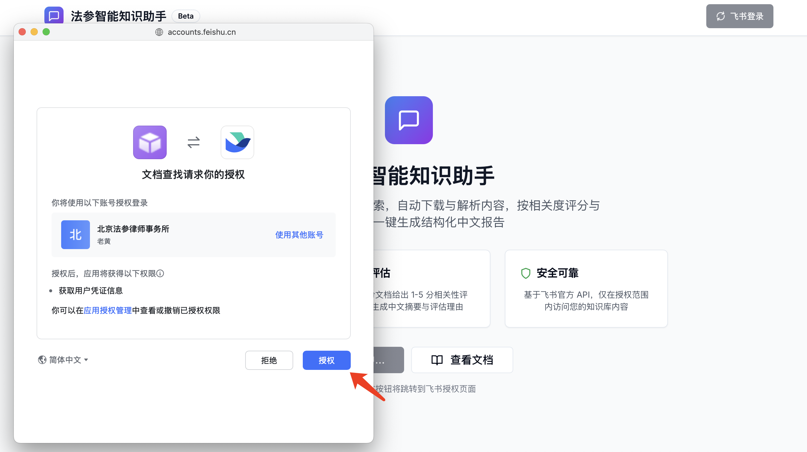 - “未授权访问/需要登录”:请先完成登录;若在飞书客户端内,会自动尝试免登,若免登失败则会尝试弹出窗口获取授权,请运行弹窗。